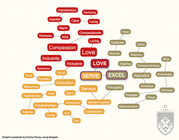 As a first step, Emma co-hosted an interactive presentation with Julie-Ann Hewitt of the Epworth Education Trust at the Celebration of Methodist Education conference in November 2025, which SWF co-hosted with the Methodist Schools Committee. In the presentation she asked for three words that characterise Methodist school leadership. After analysing the feedback gathered in this session from school leaders, three threads emerged that appear to characterise a Methodist identity that “shines through”, as one leader put it, in Methodist schools: a desire to love, serve and excel. These themes are reflected in the Methodist Schools Transforming Lives strategy, the Methodist Way of Life ‘stations’, and connected to inspections criteria such as SIAMS, SERVE, ISI and Ofsted.